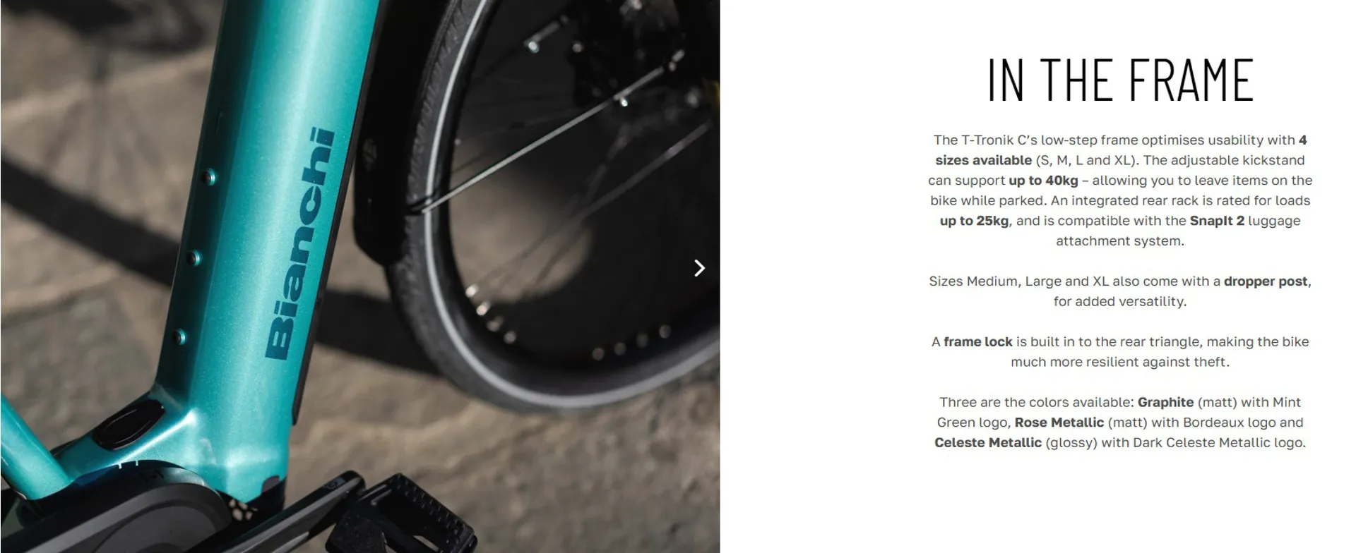 Frame - Bianchi T-Tronik C, aluminium, 9x135mm rear quick release, Post mount 160 disc brake type, Front travel 80 mm, Internal cable routing in steerer, 800 Wh battery compatible, sizes SM- MD-LG-XL