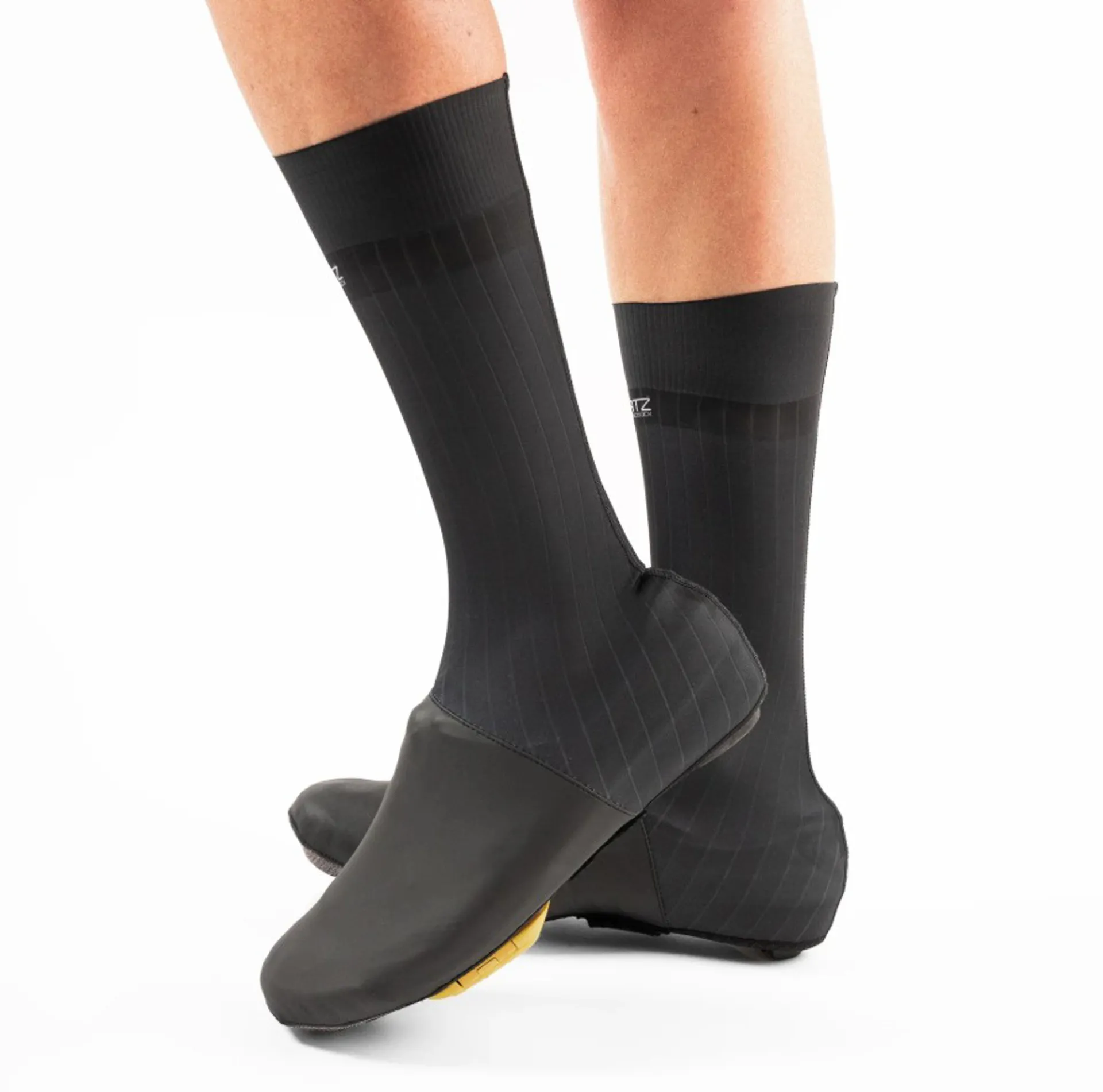 • Striated, aero fabric is cut and tuned to follow the contours of the ankle joint and articulate beautifully without wrinkling / creasing on the pedal stroke.